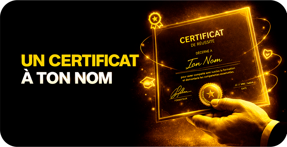 Une attestation officielle de formation. pour valider tes compétences et booster ta crédibilité.